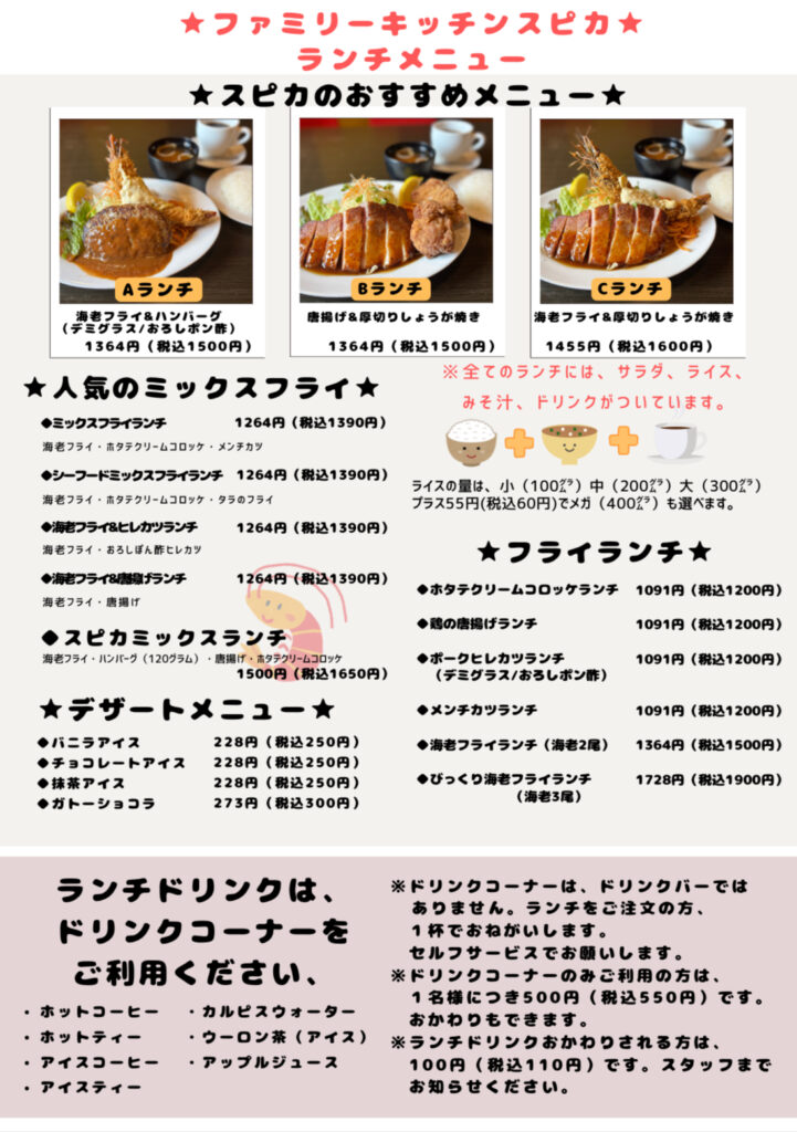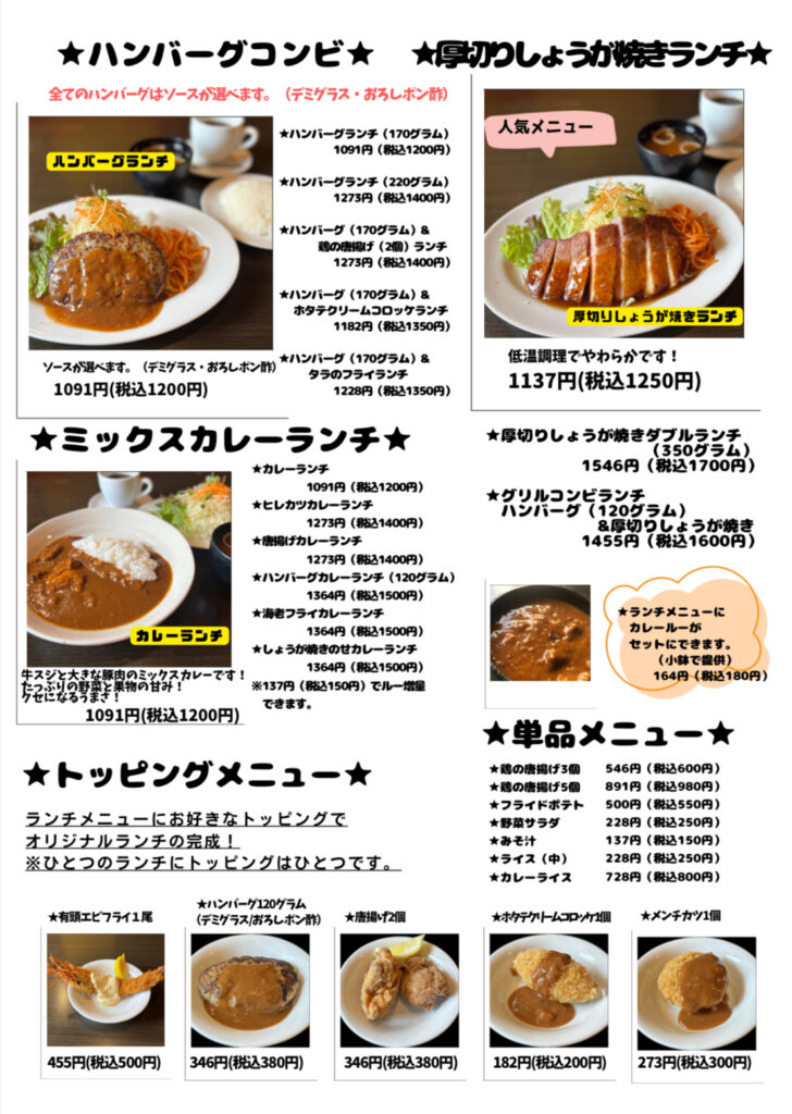 ※全てのメニューにライス・お味噌汁・サラダ・ドリンクがセットです。